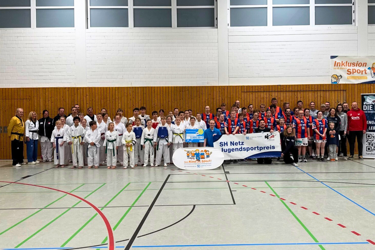 Die Verleihung des SH Netz Jugendsportpreises 2025 fand am 19. November 2025 im Rahmen eines Show-Trainings mit Programmpunkten der inklusiven Taekwondo- & Handballsparte statt. Den ca. 150 Besucher*innen, Athlet*innen und Ehrengästen wurden über 45 Minuten unterhaltsame Einblicke in den Trainings- und Wettkampfalltag geboten. Im Anschluss wurden alle Anwesenden in die Halle zur feierlichen Auszeichnung durch die SH Netz GmbH gebeten. Nach einigen Redebeiträgen der Bürgermeisterin, SH Netz Gmbh und Sportjugend klang die Veranstaltung im großen Get-together in der Sporthalle Kiebitzreihe aus. Neben wertvollen Begegnungen und Gesprächen mit Athlet*innen und Beteiligten, konnten die dargestellten Sportarten an Stationen erprobt werden.